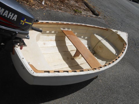 2.4m fiberglass dinghy and 5 hp yamaha