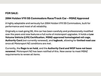 2004 Holden VYII SS Commodore Race/Track Car