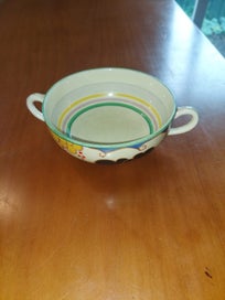 Closes: Tue, 24 Feb Clarice Cliff Bizarre - Two handled bowl, geometric banded pattern, c.1930s