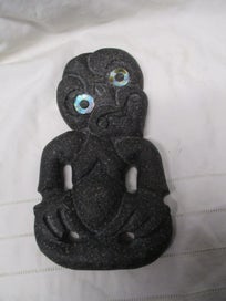 Closes: 3 hrs 24 mins POR25 779 - Tiki - Carved from Volcanic River Rock - Paua Inlay