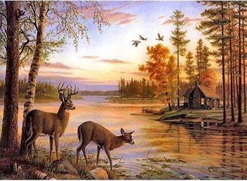 Closes: Thu, 30 Apr Diamond Painting Full Rhinestones Deer Elk Animals Lake Forest Diy, Diy 5d Diamo