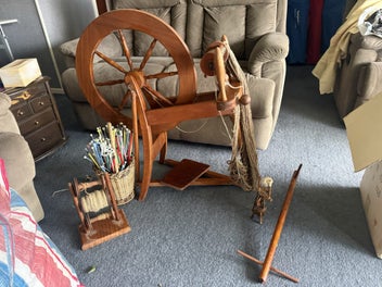 Closes: Thu, 7 May Spinning wheels and 2 bags of knitting and spinning gear