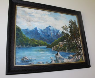 Closes: Wed, 21 Jan +++ W. E. CLARK " MAVORA LAKE - NZ SOUTH ISLAND" OIL PAINTING +++