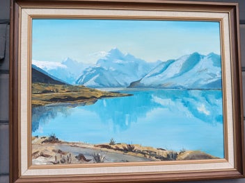 Closes: Tue, 20 Jan Oil on Board Overlooking Lake Pukaki Aoraki/Mount Cook W D Bond 1985