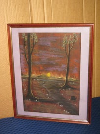 Closes: Tue, 20 Jan Rusty - Trees & Moon Landscape Original painting - oil pastels ?