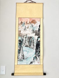Closes: Tue, 20 Jan Original Hand-painted Chinese Ink Scroll – Landscape Artwork by a Young Artist