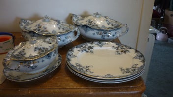 Closes: Wed, 15 Apr ANTIQUE BLUE, WHITE & GOLD TUREENS & PLATES