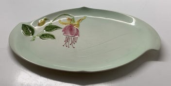 Closes: Mon, 13 Apr ROYAL WINTON - PINK FUCHSIA FLOWER - MINI SERVING PLATE - BASE LIGHT GREEN