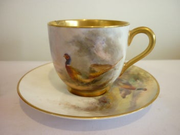 PHEASANT H/ PAINTED,ROYAL WORC DEMI TASSE C & S. JAS STINTON.