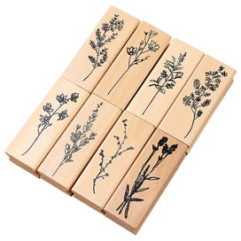8pcs Wood Scrapbooking Stamps Flower Plants Stamps Diy Wooden Stamps Small Jour