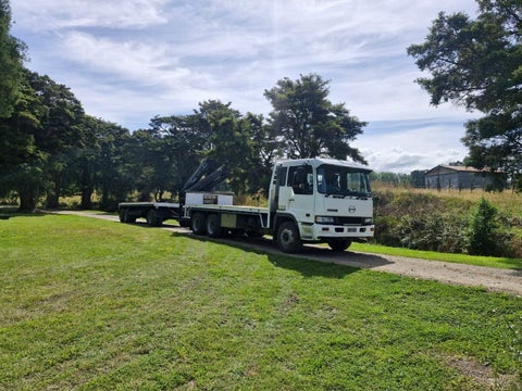 2002 HINO FS HIAB & 3 AXLE TRANSPORTER TRAILER