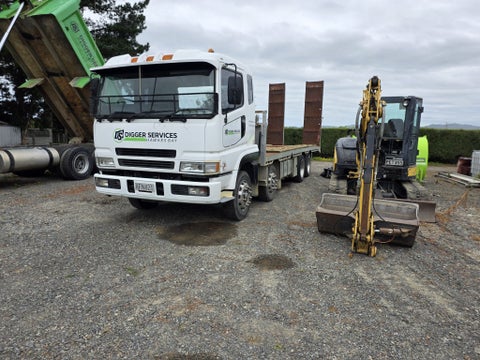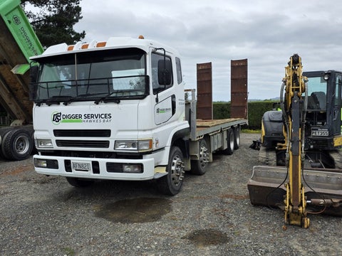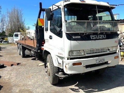 Isuzu FVR900 3 axle with large flat deck.
