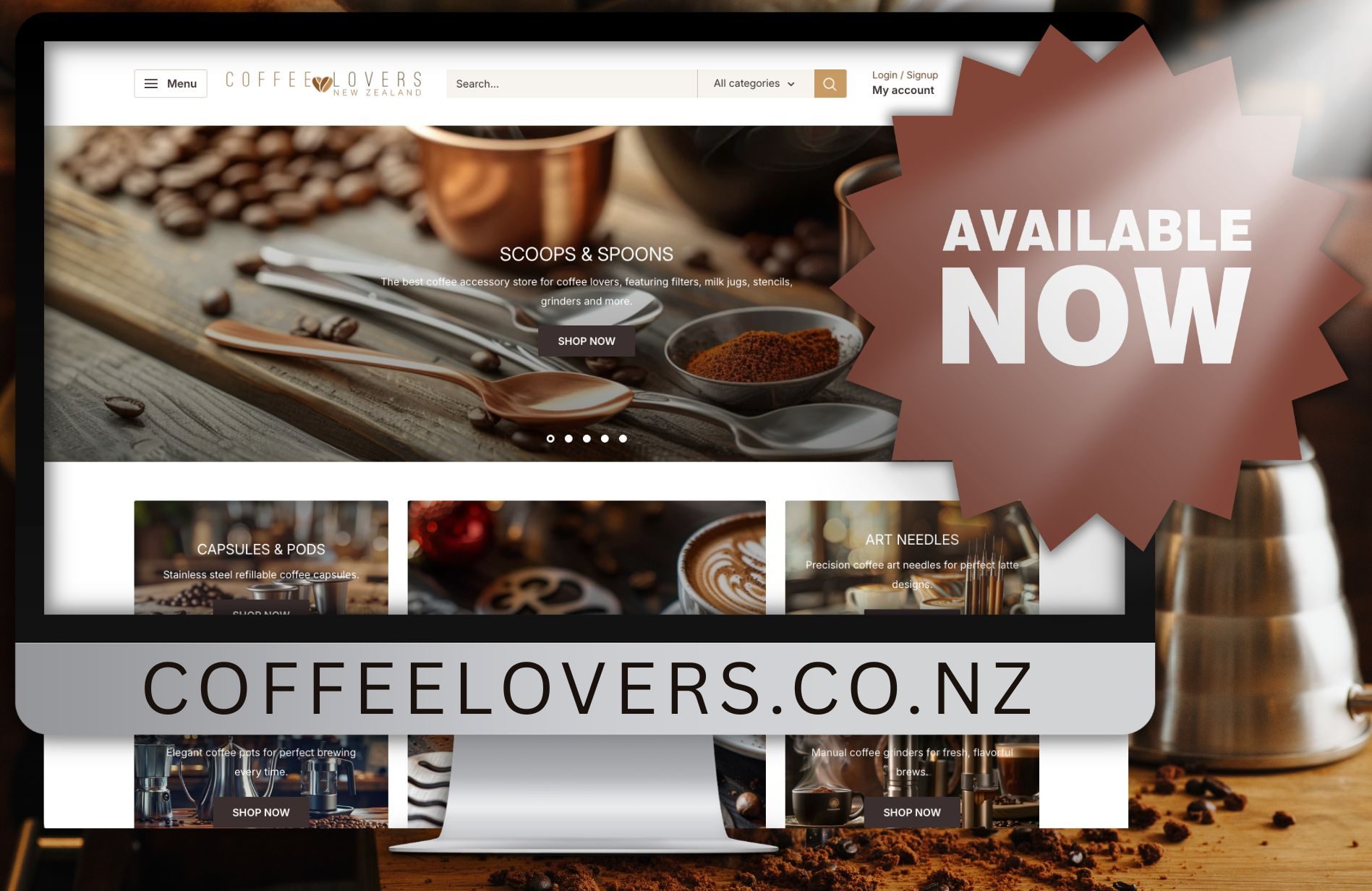 Designed to be visually appealing to New Zealand customers, it currently boasts over 480 proven-to-sell quality products covering a diverse range in the coffee industry. Starting with this base, you can easily scale the business by adding additional products.