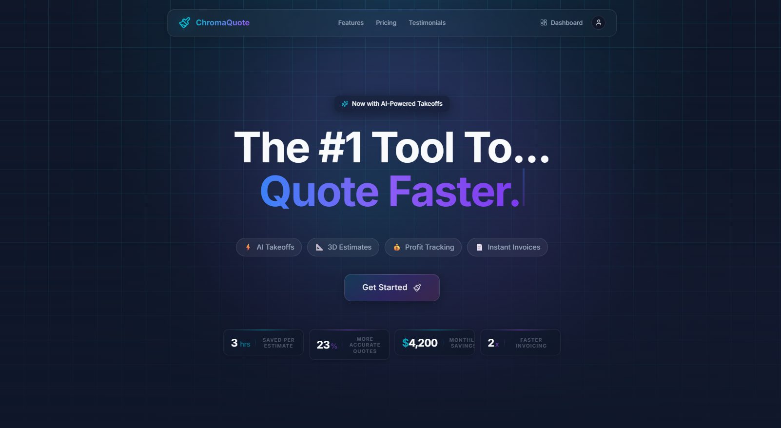 For sale is a fully functional, pre-revenue AI SaaS asset called ChromaQuote. It is a web-based application designed to automate PDF blueprint measurements (takeoffs) for the commercial construction and trades industry.