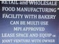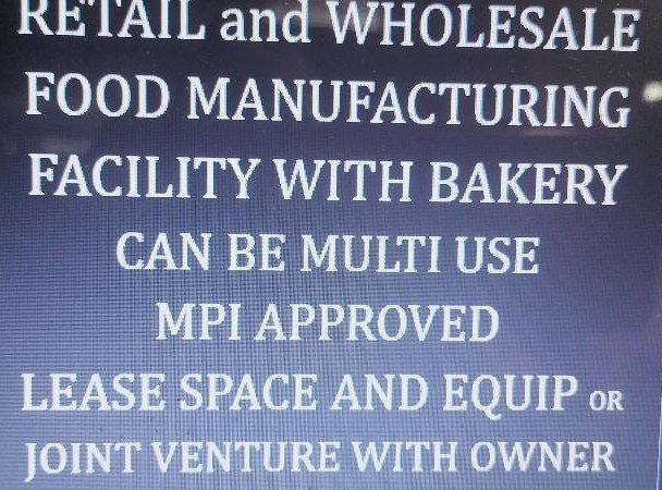 RETAIL and WHOLESALE FOOD MANUFACTURING FACILITY WITH BAKERY .-- CAN BE MULTI USE -- MPI APPROVED.---LEASE SPACE AND EQUIP OR JOINT VENTURE WITH OWNER.