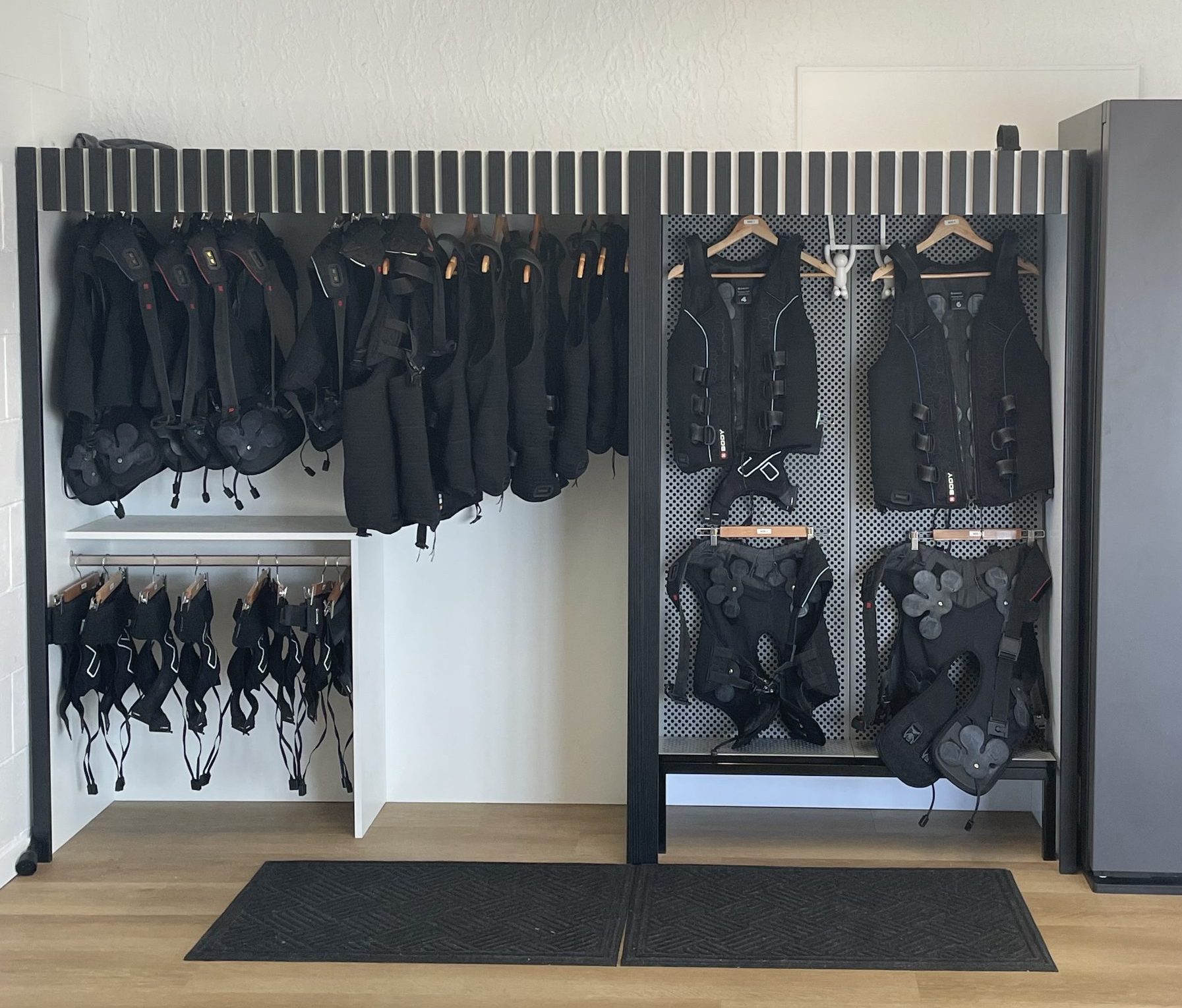 Suit storage x2 (bespoke to fit all suits and set up for next client(s)
