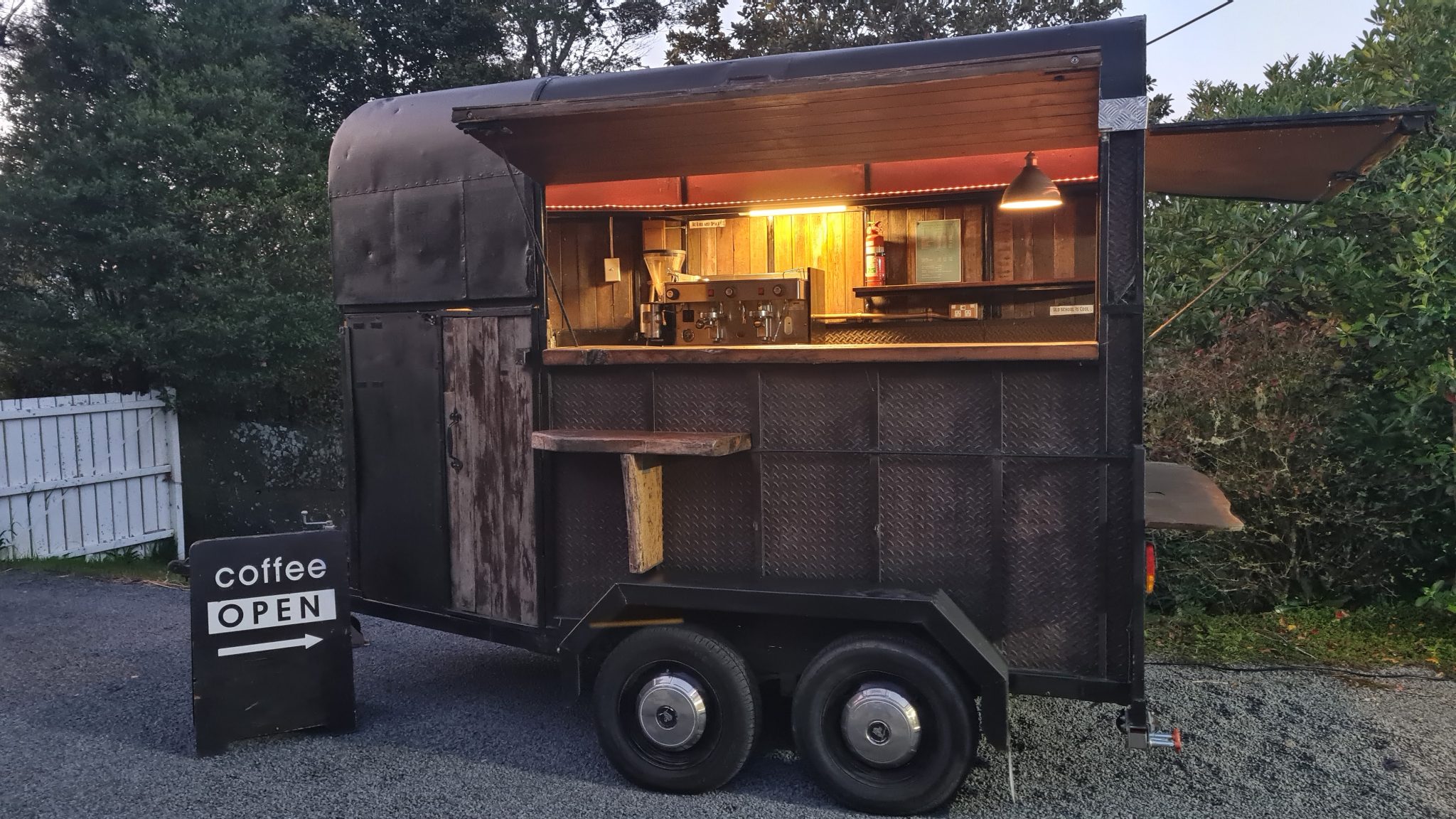 Check out this mobile coffee cart - yep, it’s a customised horse float with all the
