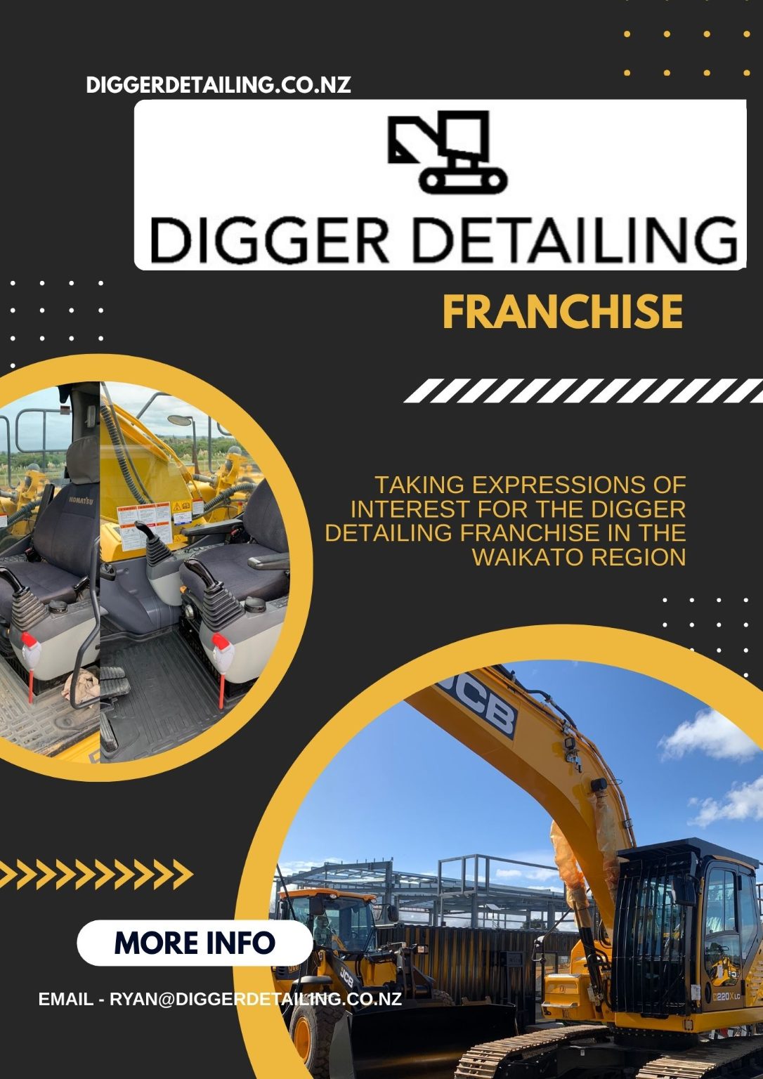 This is your chance to take over the established Auckland Digger Detailing business and become the founding franchisee in a growing specialist franchise.