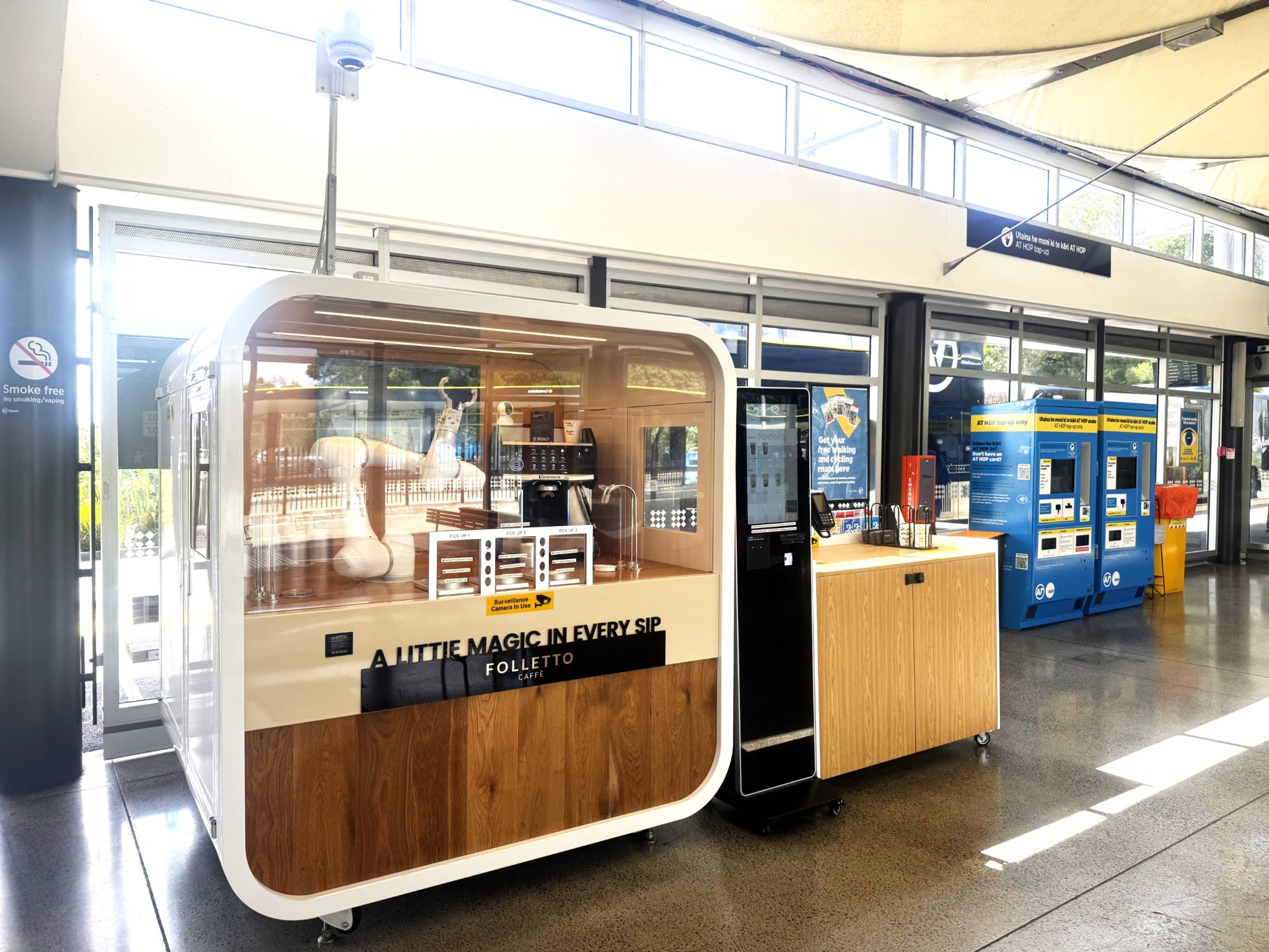 An outstanding opportunity to acquire a fully automated Folletto robot coffee machine business in the high-traffic Constellation Bus Station, Auckland.